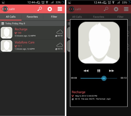 If you like, you can navigate to the filter tab and select the type of calls to record. You can record all calls, call from contacts, or calls from unknown number. Also, this app gives you option to manage recordings for individual contacts; simply toggle the button to OFF for contacts whose calls you don’t want to record.