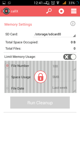 memory settingsIn notification option, you have the ability to turn ON or OFF the notification. The notification indicates that a call is being recorded.
