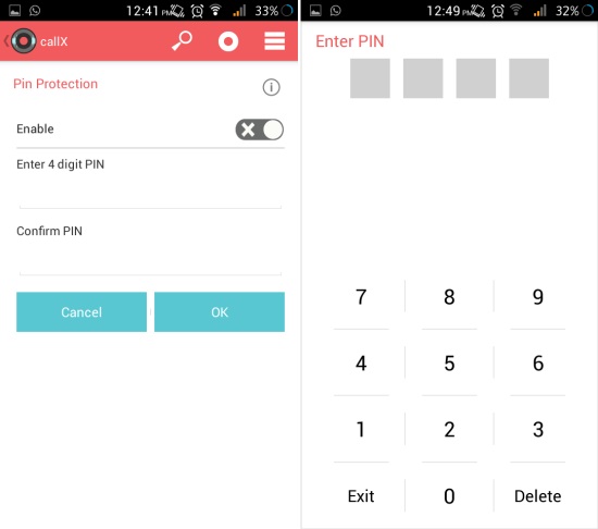 passcode in automatic call recorder for android
