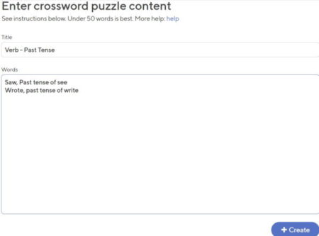You can also check out sample crosswords given on the right side of the screen. You can see how the crosswords you create will look like. All the crosswords will come with instructions, an answer key, and edit option.