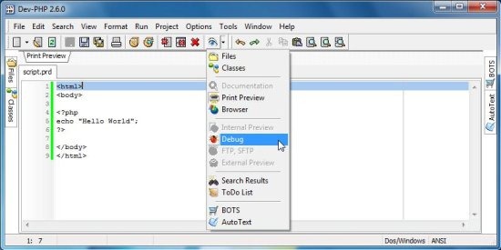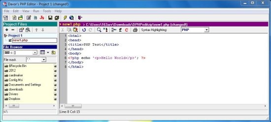 Davor’s PHP Editor is another free Integrated Development Environment for PHP programming language. It allows you to create, edit, and manage applications and scripts programmed in PHP. This free PHP IDE provides an integrated editor, a project manager, a file browser, and an internal web page previewer. It also provides support for other scripting languages like HTML, Javascript, and CSS.