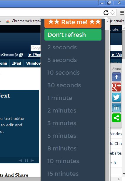 As you can see from the screenshot above, this auto refresh extension comes with refresh rate presets (5 , 10 seconds or 1, 5, 15 minutes).