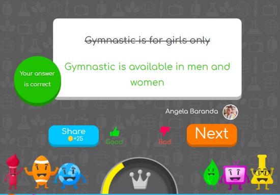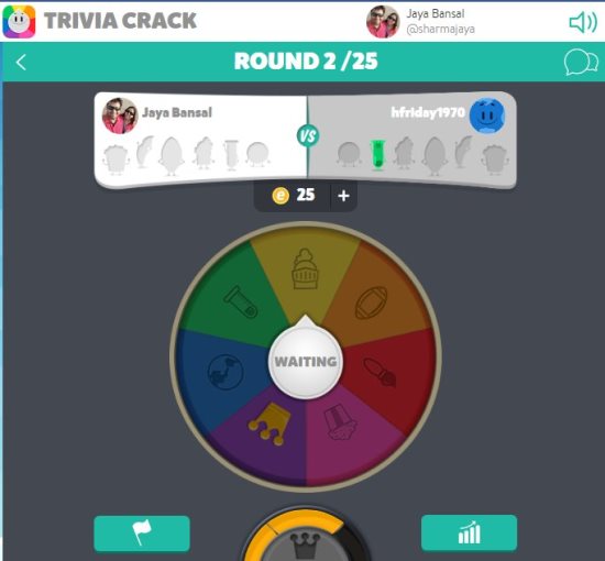 If you answered right then you can go ahead and spin the wheel again to choose another topic for answering. If you answered wrong then the spin passes over to your opponent and you have to wait until they give a wrong answer to get a chance to spin again. You can also start a new game while your opponent is answering his side of the questions. That way you don’t have to wait for your opponent to finish his game.