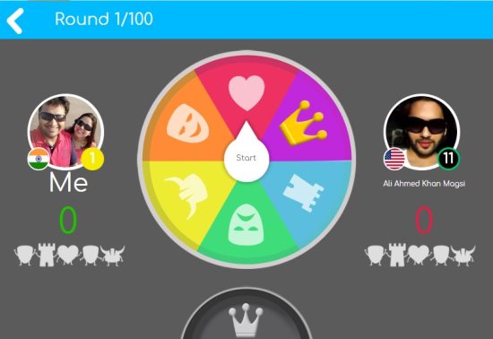 Trivia Crack is a free Trivia game for Facebook. Trivia games usually features questions on various topics like arts, science, entertainment, history, etc. This game is no different. At the start of the game you have to select whether you want to play the classic game or a tournament. Also you have to select whether you want to play with a friend or any random user. If you choose random, then the game will pair you up with any random user of the game. But if you choose the friend option then you have to select a friend from your Facebook friends list to play this game with you. After selecting you will be taken to the spin the wheel screen, which can be seen in the screenshot above.