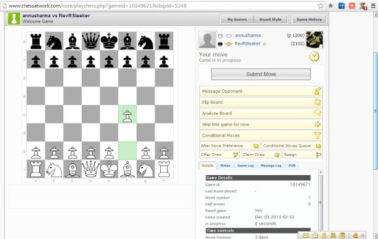 Chess@Work Notifier is a free chess playing extensions for Chrome that lets you play chess with live opponents or with your friends simply by inviting them for the game play. You can invite your friends via email, where it becomes necessary for them to add the extension on their Chrome browser as well. It lets you play more than one game at a time; which means you can play with your multiple friends at the same time. This free chess playing extension also notifies you when its your turn to perform chess move. This Chess plugin displays the total number of awaiting games on which you have to perform your move, in case you are playing multiple chess games. It notifies your turn as desktop popups and icon notification, so that you can click on the extension icon located next to the address bar to perform your move. With this Chrome plugin you can play various chess games with more than one opponents at a time. You don’t have to compromise with the provided chess board design as it offers you numerous board designs which you can use to set piece style, board theme, and the board size.