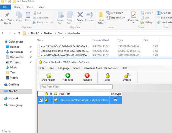 Quick File Locker is a file locker software for Windows 10 which again focuses on protecting and locking down of both individual files or entire folders at once. Application control panel has a list of protected files and folders, where they are managed, see image above.