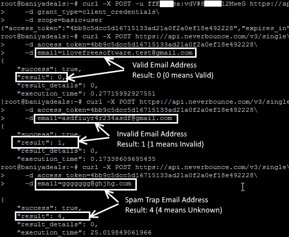 I tested the API with a valid email address and an invalid email address, and it gave correct results in both the cases. Then I tried API with a spam trap email address. To my surprise, NeverBounce did not classify that email address as a valid email address, but actually classified that as Unknown. Spam Traps are very hard to identify, and the fact that NeverBounce did not classify that email as valid shows high quality of email verification logic that NeverBounce uses.