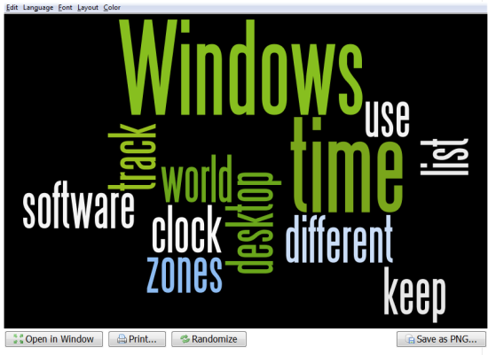 EdWordle is easy to use word cloud generator. It provides you with a text box in which you have to type or paste the words from which you want to generate the word cloud. When you have entered the words, it will show you a randomly generated word cloud but there are options to customize your preferences. There are options related to language settings, choose a font style, color, and layout. If you are finding it difficult to come up with a perfect combination of these options, then you can simply click on Randomize option to go through multiple randomly generated word clouds.