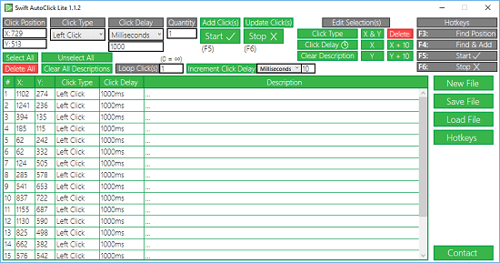 Swift Auto Mouse Click is another software that you can use to random click in a specific area. The software doesn’t allow you to specify an area to click in that, but it offers other way of doing that. In this software, you can define a custom list of coordinates by selecting them from your screen. And then this software will use those coordinates to simulate single click, double-click, right-click, and middle click. You can either let the software to click all the coordinates you have mentioned in series or you can let the software click all those in an infinite loop. Also, you can configure the other options, like specifying delay between successive clicks.