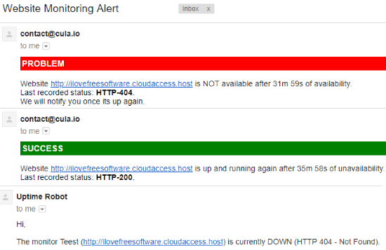 These are the best free online service that you can use to monitor uptime of multiple websites easily. You just have to specify the URL of websites in it and they will automatically keep checking their availability. They look for the HTTP status code of the websites after a fixed interval of time. Also, they offer other features that I have mentioned in the context of each one of them. In my opinion, you can use Downtime Monkey, Cula and UptimeRobot to monitor uptime of multiple websites.