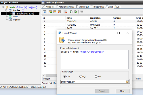 SQLite Query is another free software that you can use to convert SQL to CSV in Windows. It is a lightweight software basically meant for editing of SQLite databases. Since it is a lite software, so you can use it to convert a SQL script to CSV with the help of an intermediary database. Using this software, you can run the source SQL script against an empty database and then export the data tables in CSV format. This software is extremely simple and hardly takes a few seconds to convert a SQL script to CSV.