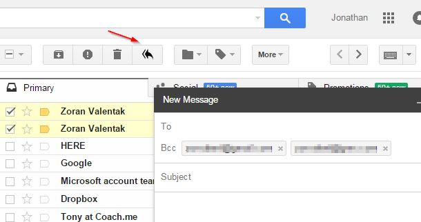 Once you’ve done that, notice on the image above that next to the usual Gmail buttons there’s now a new additional button that’s available. This is the button for starting the batch reply process. It will open up in a “New message” window and it won’t be any different from a standard Gmail message. One thing that is going to be different is that the addresses of all the emails that you selected are going to be added to the “Bcc” field of the new email.