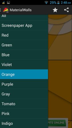 They are also grouped according to color. Swipe from left will bring up the sidebar selector which you can use to switch between wallpaper colors. Dozens of wallpapers that follow material design are available for each color.