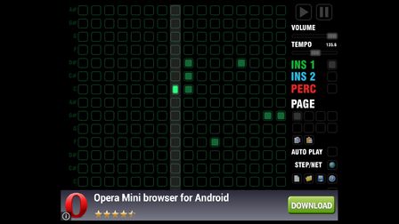 Notice the two Ins (Ins 1 and Ins 2) options on the right plus the Perc option. They are there for switching between the instruments to be played during the composition. The page option determines the length of the song that you’re creating. Tempo can also be changed. To turn on an instrument in a given moment just tap on the tile from the tile grid on the left. Just like what you had to do in all the other music creator apps mentioned here.