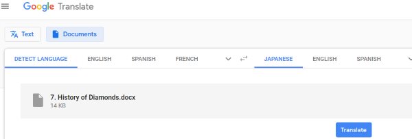 To go ahead with the translation click translate button. As soon as you click the button your file will be translated in the language of your choice. In the above example, we uploaded a English doc file and translated it into Japanese. The conversion was quick and the format of the doc file was maintained. So Google translate can also be a good option to try.
