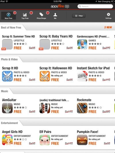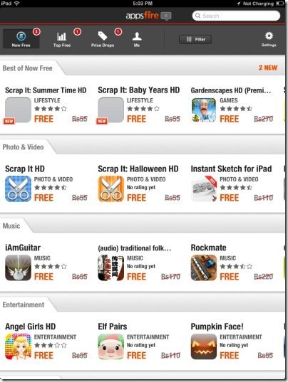 Appsfire Deals lets you browse apps according to different categories which include best of now, photo and video, music, entertainment, smileys, and books. Appsfire separates the apps which are free for limited time period and the apps which are totally free. Just select the category and scroll to the left side to select your favorite app.