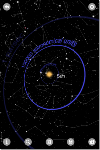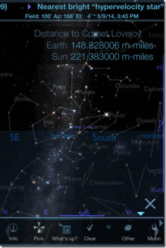 The second astronomy app for iPhone is Distant Suns (Lite): Comet Lovejoy edition. This app is one of the best apps for exploring each and every aspect of the universe as it has a database of thousands of galaxies, nebulas, and stars. It also lets you interact with the universe in 3D manner with all the gesture controls like pinch and zoom, rotating, etc. This app is developed with main focus on Comet Lovejoy and due to this reason, it constantly displays the distance of Comet Lovejoy from both the Earth and Sun.