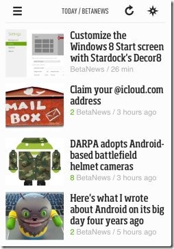 Also, you can filter your knowledge by knowing the updates of today, latest, and the old updates separately. The user interface of the app looks nice when you see all the RSS feeds and news in an organized format. You can even get the news according to categories which include Android, Apple, architecture, branding, business, cooking, cinema, and more. You can also check out Newsify Google Reader client for iPad reviewed by us.