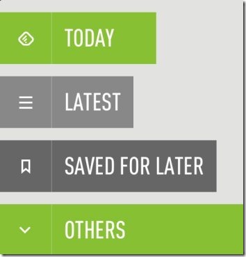 - The app filters all the updates according to today, latest, saved ones, and Google Reader.