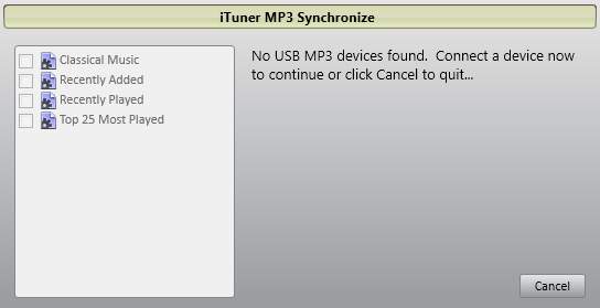 I’m sure on the images above you can see that iTuner has the ability to sync music with MP3 USB devices, not just with iPod, iPad or iPhone but any player that can be connected via the USB port.