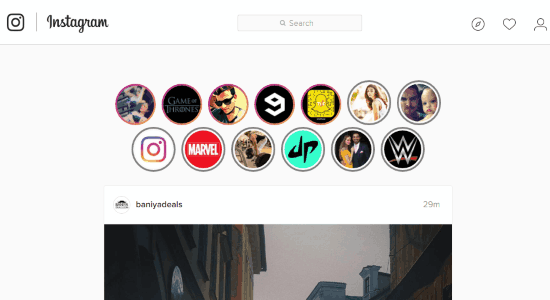 Step 2: Now, simply go to the Instagram web application and sign in using your Instagram app credentials. As soon as you do that, your “Feed” page will open up along with the latest stories submitted by your friends at the top, as shown below.