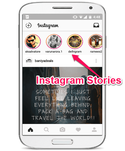 While using Instagram on your phone, you would see all the stories submitted by your friends at the top of the screen, along with the option to create your own story, as shown below. But, when you browse the web application of Instagram, there will be no such “Stories” section to view or create stories.