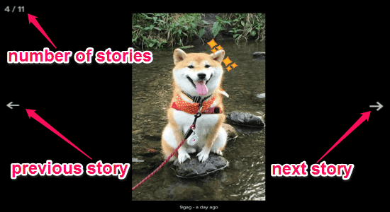 Step 3: You can now simply click on any of the user icons to view the story shared by that particular user. If the user had posted multiple stories recently, then you will be able to view all of them by using the arrow icons on the left and right of the viewer.