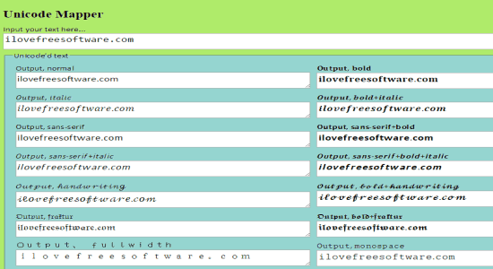 Fancy Text Converter is another free online service to add different Unicode text to your Facebook posts. It is a simple tool and supports only 6 Unicode formats such as bold fraktur, sans-serif, bold, italic, monospace, and bold/italic combination.