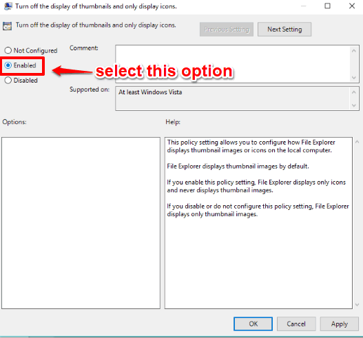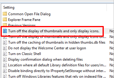 Whenever you have to re-enable image thumbnail preview, you can repeat the steps added above and select either Not Configured or Disabled option. Save the new settings and then you can preview images using thumbnails.