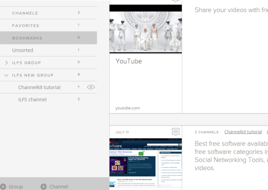 Channelkit also helps to mark channels as favorite saved by other users. By default, your channels remain private to you which you can make public also. It also provides a bookmarklet to quickly bookmark a particular webpage.