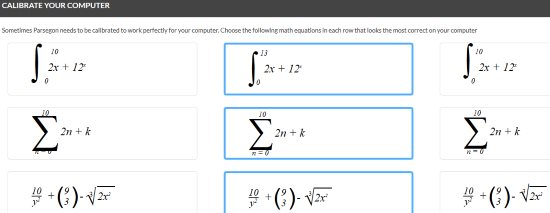 The calibrate option as can be seen in the screenshot above is to check which format of equation looks best on your computer. Just select the ones which look like the perfect ones in your computer and the app will take a note of that.