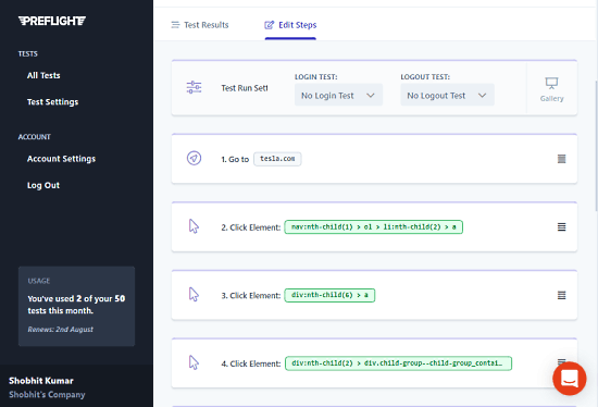 Preflight is a very capable UI Testing tool that allows you to create your own UI tests and run them automatically on a pre-defined schedule. It not only automates the testing process but can also run the test on different environments, browsers, and screen sizes. The results show you screenshots of each step that can be very helpful to pinpoint the error. So the bottom line is, Preflight is handy to automate UI testing the way you might not think of being possible and it offers a decent free plan to get you started.