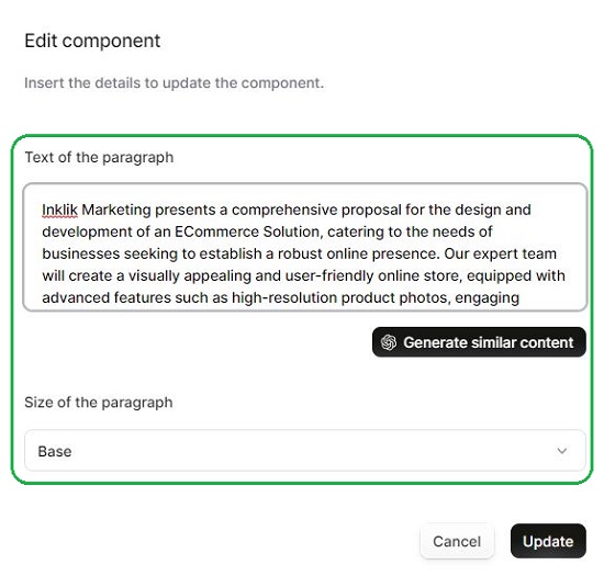 9. You can hover your mouse over any component of the Proposal such as Title, Paragraph and more and click on the Edit icon to modify it.
