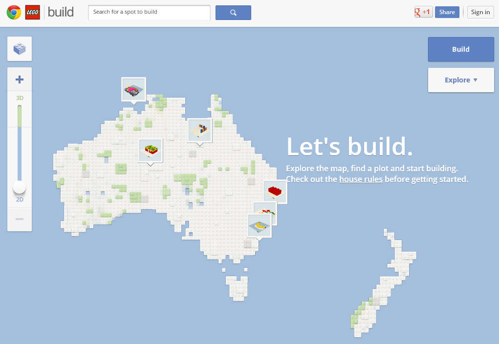 where you would like to start building your Lego creation. You’ve probably noticed that the Lego land which you can see on the image above is actually Australia, which is a good thing, because Australia is a big place and you can find a lot of places where to build.