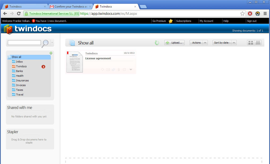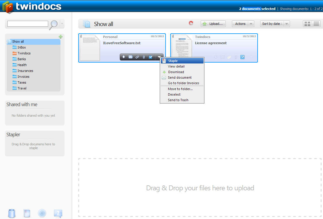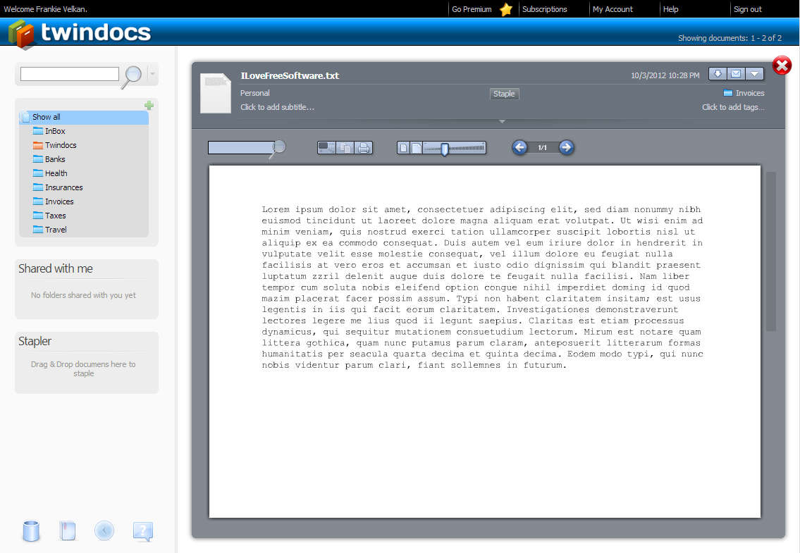 TwinDocs is a free online document storage, filing and management web service where you can easily upload and store your important documents. You can store documents like business files, contracts, bank statements, IDs and have them all stored in a single place, accessible from anywhere in the world, from either Windows, Linux, Mac OS, iOS, or Android. Twindocs is accessible through its app in Android and iOS devices.