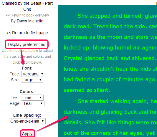 Before downloading the eBook, you can even read it online. This is an interesting feature associated with Smashwords. For reading the eBook, display preferences can also be set. Preferences such as: font type, font size (small, medium, large, and huge), text color, page color, and line spacing can be adjusted. These preferences would help you to make online reading more comfortable for you.