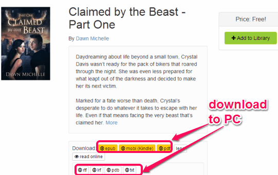 When you find any eBook of your mood, click on its title. This will explore that particular eBook and provide you download options. You can download that eBook as ePub format (which can be opened with any ePub reader software), PDF file, RTF, or any other available format.