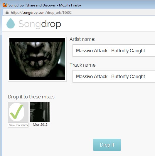Once that you’ve entered the song name, selected mixes, which are basically playlists, click on DropIt button once more to confirm and add the song to your SongDrop account.