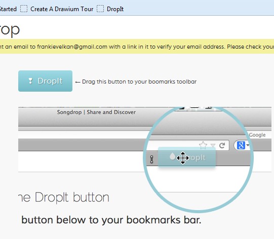 Find the songs that you’re interested in listening and while the tab is open click on the DropIt button, which should by now be somewhere inside your bookmarks toolbar.