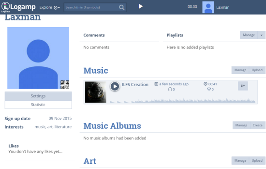 Logamp is a free website that lets you upload and share the unlimited music, art, and literature. Yes, it’s true that the platform is not so popular, but still it’s really beneficial for artists as they will be able to show their creativity to others. Where similar services put restrictions in their free plan, and allows to only store the music, this website is a boon as you can upload and share your creation without any limit.