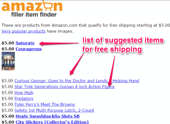 In above screenshot, you can see filler products suggested by this website for free shipping on Amazon.