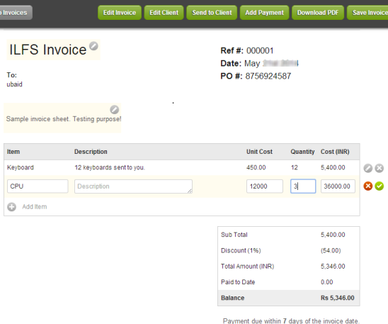 Invoiceable (free version) is also a handy website to generate a good invoice using the template. This website is also useful to manage invoices, clients, items,  and check stats. Unfortunately, its free version contains link of this website in invoice, but still it is useful to generate invoices and keep the records.