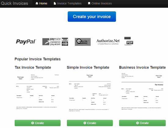 Onlineinvoices.com (or Quick Invoices) provides three different templates that you can use without sign up. You can use Tax Invoice, Simple Invoice, and Business Invoice template. Before sending the invoice, you can also preview it, or simply download it for later use.