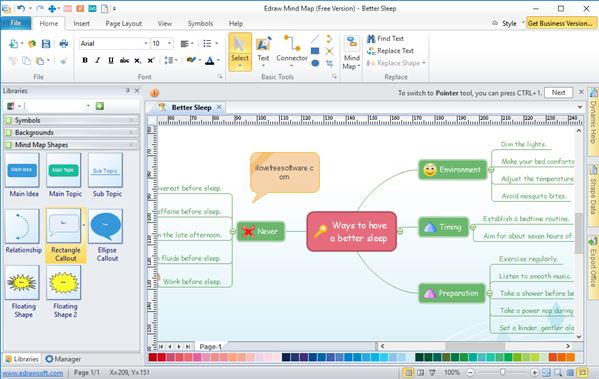 Edraw Mind Map, free version, is a free brainstorming software that’s a complete opposite of ThoughtStack, as you can see from the screenshot above. It has a modern interface, with a ribbon menu up top, and a large library of shapes and objects that can be added to the drawing board when developing your ideas.
