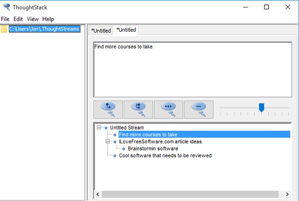 ThoughtStack is the simplest brainstorming software that I tested. It is aimed at those who are a bit overwhelmed by all the options available in the other 4 applications that I tried. ThoughtStack is simple because of several reasons. First it’s portable and lightweight (around 700KB). Next it’s text based, without any kind of fancy graphics.