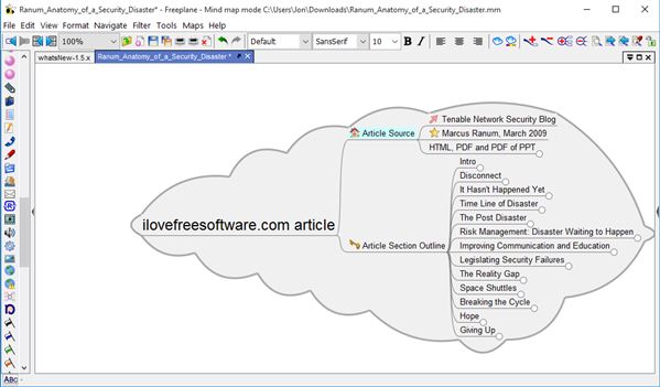 Freeplane is a free brainstorming software for Windows 10 which has a lot of similarities with FreeMind. Starting with layout, you can see a familiar theme, left sidebar has objects that can be used while brainstorming, toolbar is up top and the editing area takes up the rest of the UI real estate.