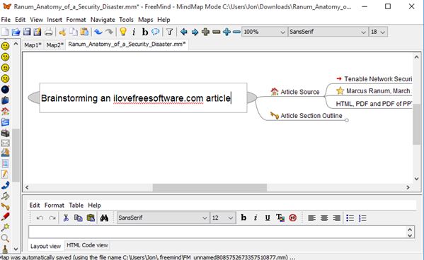 FreeMind is a free brainstorming software for Windows 10 which has a nice mix of advanced features and functionality. Most notable feature found in FreeMind would be support for all the more popular formats used by other brainstorming software (even paid apps, if you want to switch from them) and it has extensive library of objects and shapes, that you can use while brainstorming.