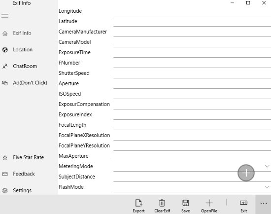 Exif is a free Windows 10 exif data reader and writer app which will let you read and write exif information of a photo. Mostly apps will let you read the exif information of a photo only. But this particular app will also let you write exif information for a photo if it is missing. The app has a simple interface which is pretty easy to navigate.