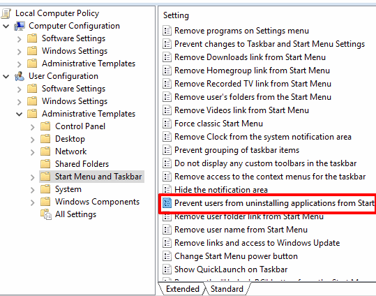 How To Disable Uninstalling Applications from Windows 10 Start Menu Using Local Group Policy?