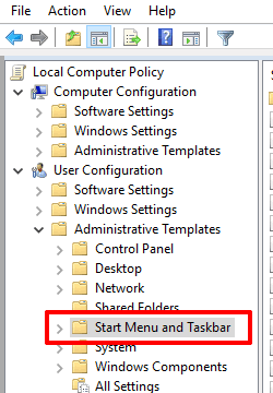 Step 2: Local Group Policy has tons of tweaks, but we have to look for “Start Menu and Taskbar“, which contains the option that we want. So, go to the User Configuration and then expand Administrative Templates menu. It will provide that Start Menu and Taskbar folder. Click on it to explore options available under it.